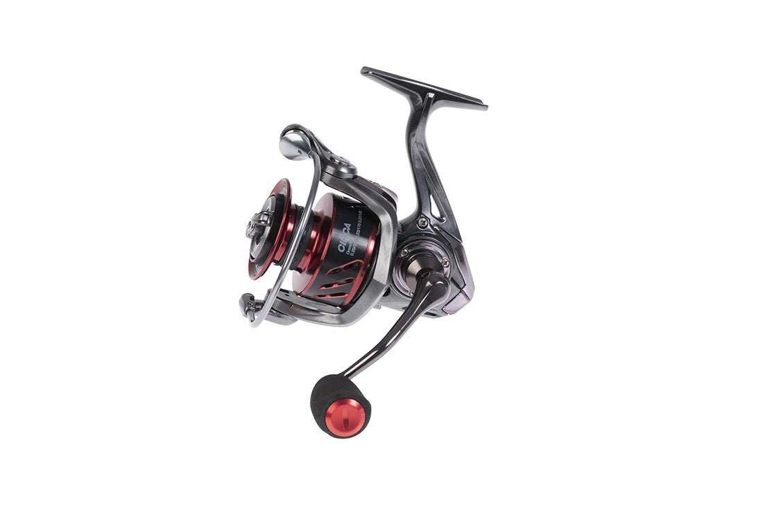 Bobina di spinning del marchio Hart, modello Circa, a colori nero y rosso, speciale per la pesca al black bass e ai predatori.