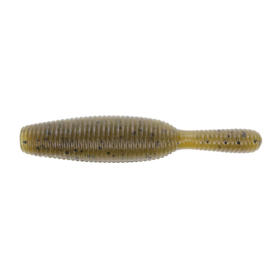 Softbait a forma di verme 88,9 mm del marchio Yamamoto modello Yamatanuki a colori verde con macchie nerospeciale per la pesca al black bass e ai predatori.