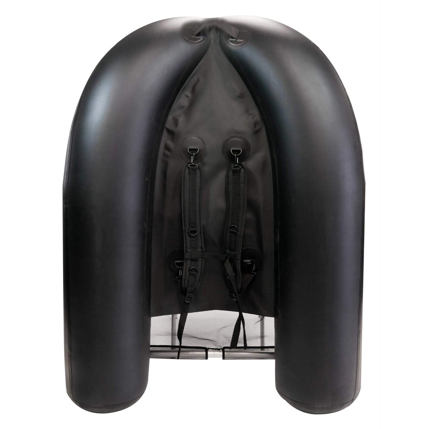 Float tube del marchio Rapala modello FT 150 a colori nero e rossospeciale per la pesca alla spigola e ai predatori.