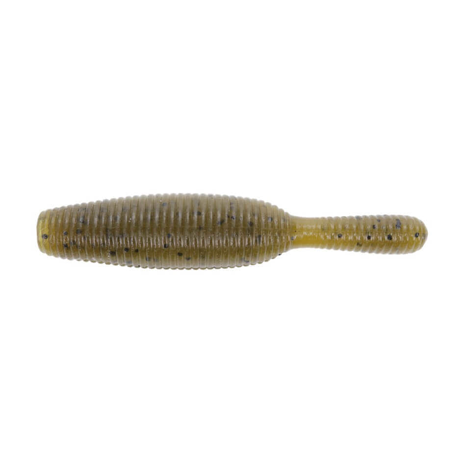Softbait a forma di verme 63,5 mm del marchio Yamamoto modello Yamatanuki a colori verde con macchie nerospeciale per la pesca al black bass e ai predatori.