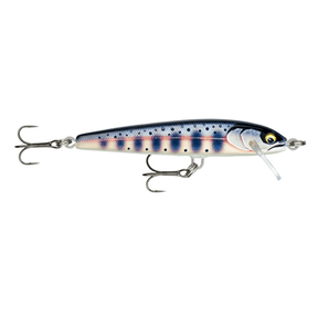 Jerkbait del marchio Rapalamodello Floater Elite, a colori Dorato Yamame (bianco, nero e blu), speciale per la pesca alla spigola e ai predatori.