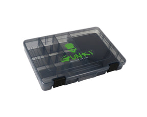 Scatola del marchio Gunki per JigHead a colori nero e trasparentespeciale per la pesca al Black-Bass.