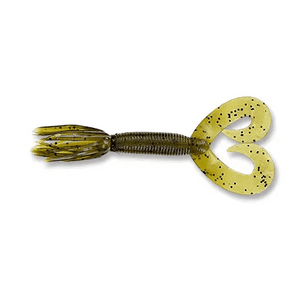 Softbait da 127 millimetri del marchio Yamamoto modello Double Tail Hula Grub colore verde con macchie nero, speciale per la pesca al black bass e ai predatori. Si caratterizza per il doppio movimento della coda e per le frange, ideali per essere montate in diversi modi. Grazie alla sua forma unica, questa Softbait rimane sul fondo e offre molta azione.