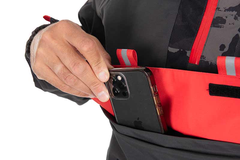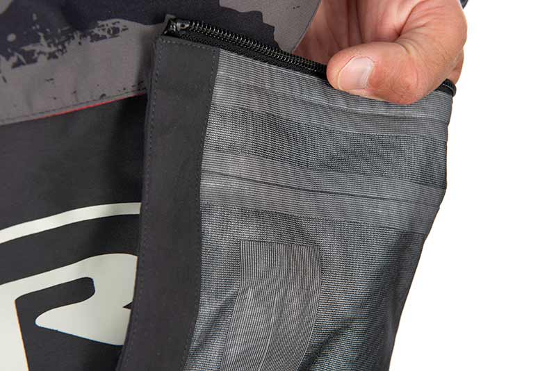 - Polsini stretti in neoprene e ampi deflettori sulle tasche