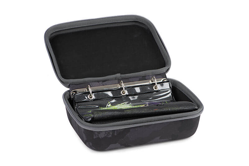 Borsa rigido per spinnerbaits del marchio Fox Rage con il design mimetico a colori grigio e nerospeciale per la pesca alla spigola.