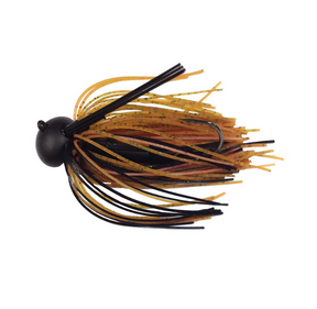 Jig del marchio Hart modello K Cobra da 14 grammi in colore OF (nero, marrone e giallo), speciale per la pesca ai predatori.