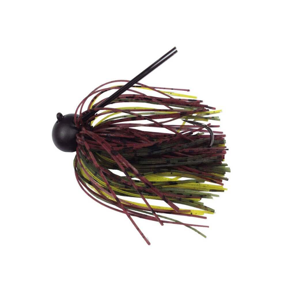 Jig del marchio Hart modello K Rugby a colori rosso e verde da 10 grammi, speciale per la pesca al black bass e ai predatori.